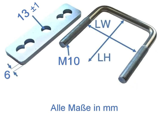 M10 U Bügelschraube mit 6 mm dicke Gegenplatte, Stahl verzinkt