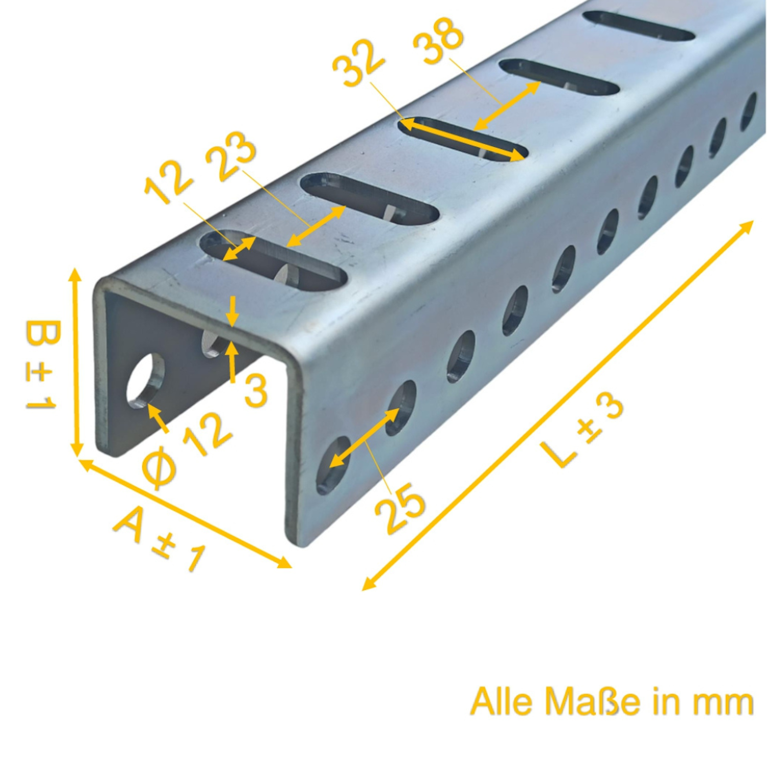 3 mm Dicke universelle U Montageschiene, Profilschiene gelocht Stahl verzinkt
